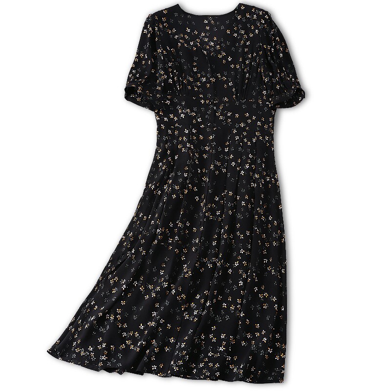 SANDRO SELEN HIGH-END HEAVY SILK PRINT DRESS WOMEN'S MIDI SHORT SLEEVE MULBERRY SILK FLORAL SKIRT