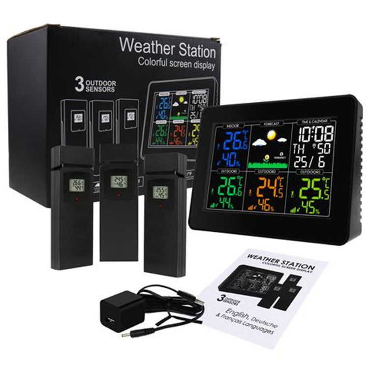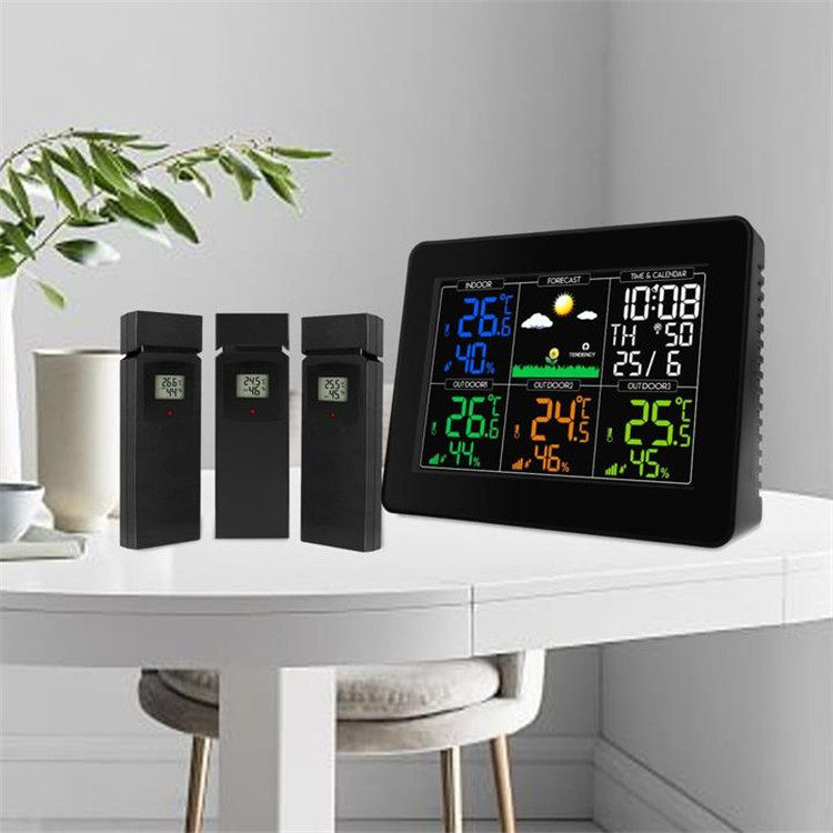 Color Screen Home Wireless Weather Station Weatherometer Indoor Thermometer Hygrometer with 3 extensions
