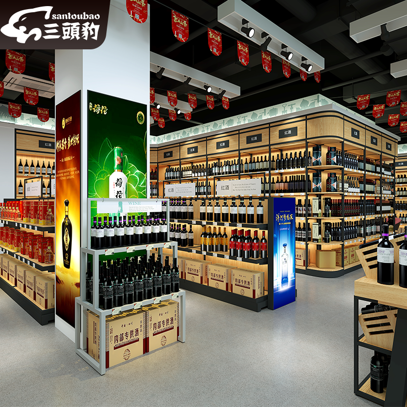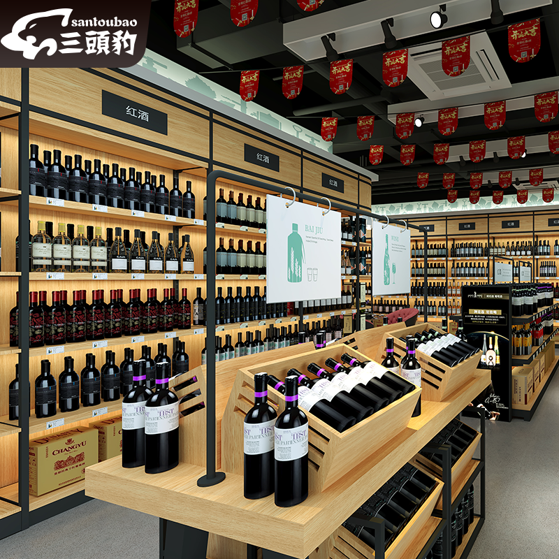 Tobacco Wine Display Cabinet Supermarket Red Wine Foreign Wine Multilayer Lean Against Wall Steel Wood Show Cabinet Wine Shop Glass Wine Cabinet Shelves Commercial