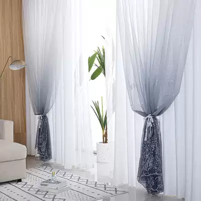 Punch-free installation curtains translucent impermeable human screen curtain telescopic rod Bedroom balcony partition shading cloth bay window double layer