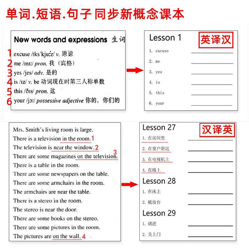 New concept English word Tacit Book Phrase Sentence No 1-2-3-4 full English exercise books 1, 2, 3, 4 exercise books for primary school students and junior high school synchronous homework books for one lesson and one exercise