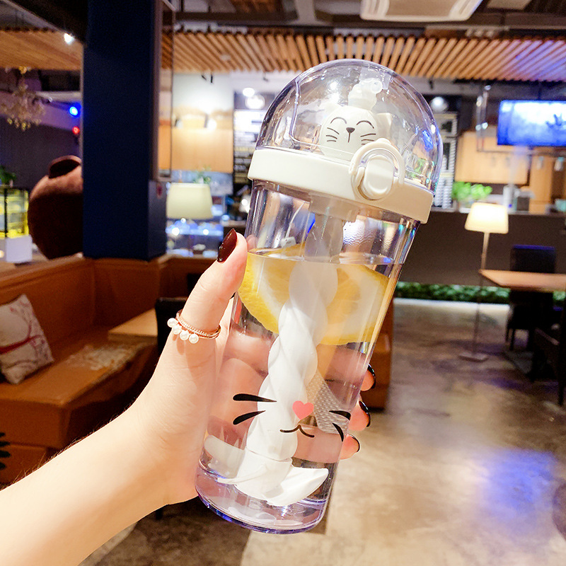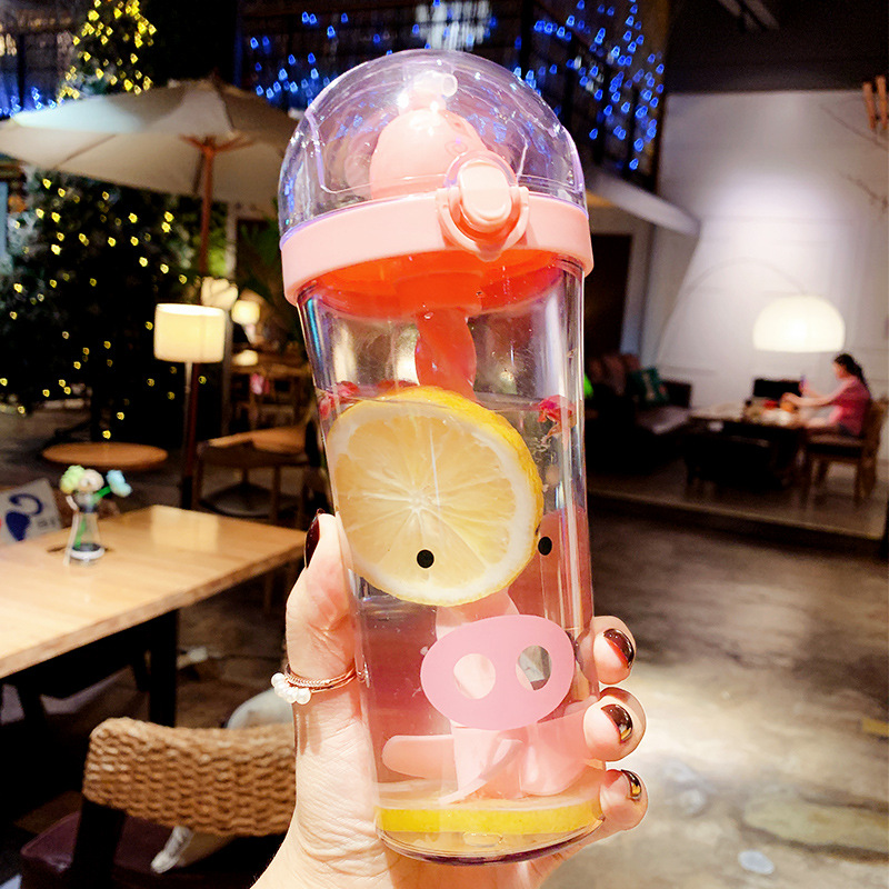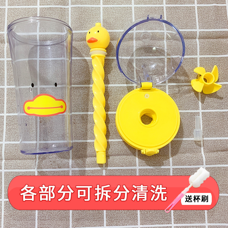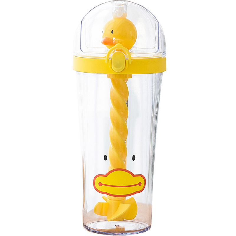 Douyin Net Red Little Yellow Duck Water Cup Stirring Straw Baby Drinking Water Cup Girl Heart Cute Summer Portable