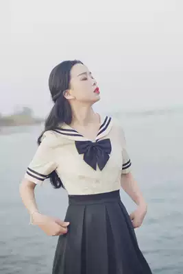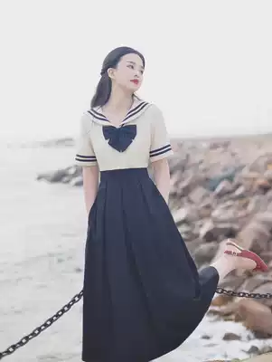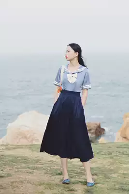 "Camellia Stationery Shop" Sailor Navy JK wind thin girl long version 21 dress