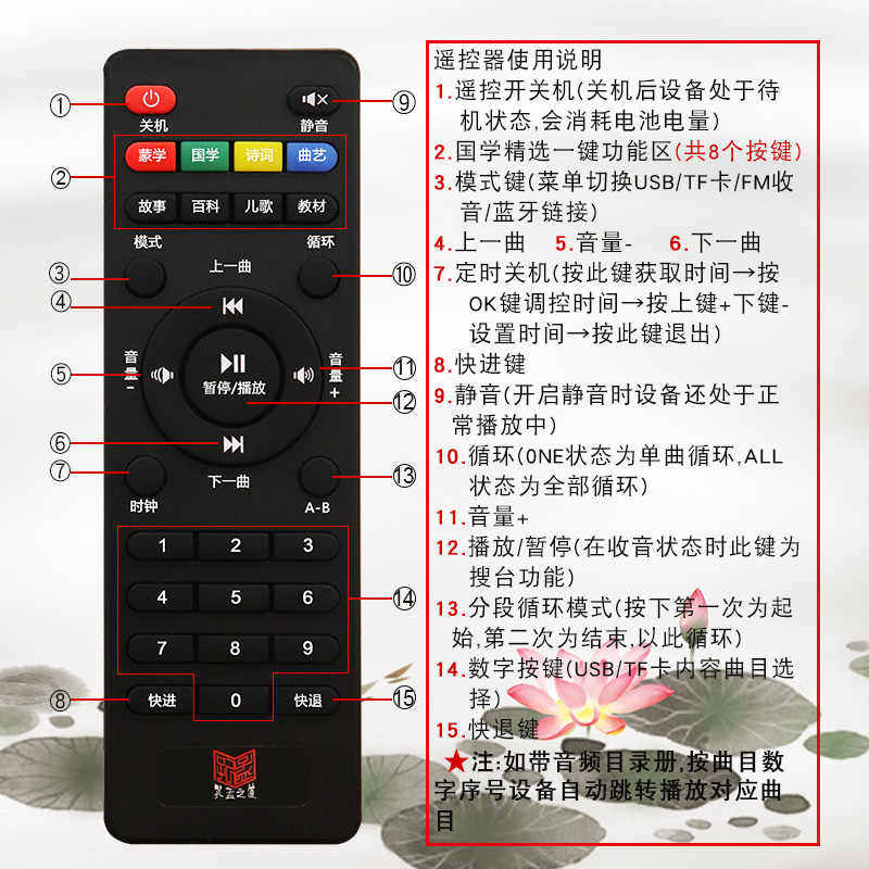 Confucius and Mencius Road Guoxue Machine Remote Control K5 Classic Listening and Reading Catalog Accessories Early Education Machine Charging Line Anti-fall Bag Microphone