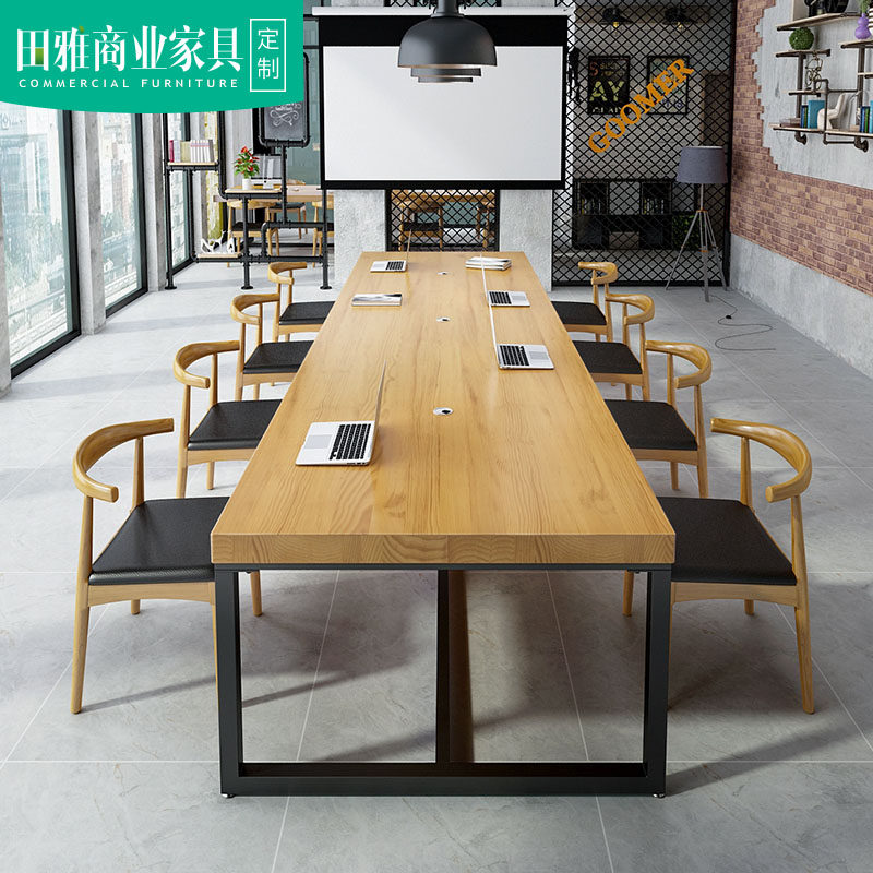 loft solid wood meeting table long table office large table designer bench industrial wind office computer table and chairs