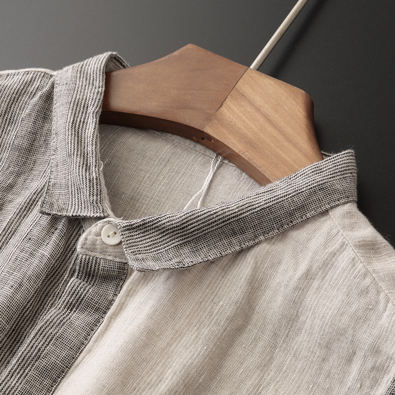 Japanese retro-color-colored-colour-collar head dark button pure linen men's short-sleeved shirt loose leisure linen shirt E