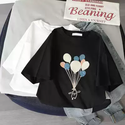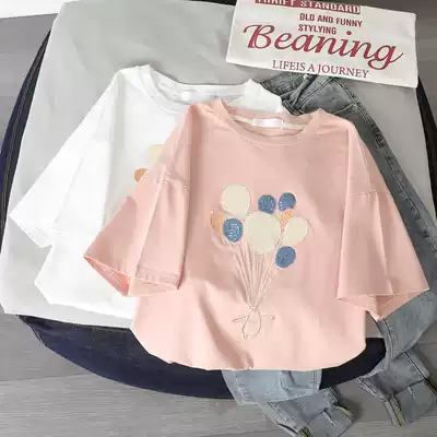 Korean white cotton short sleeve T-shirt female 2021 summer new Korean embroidery loose half sleeve shirt tide