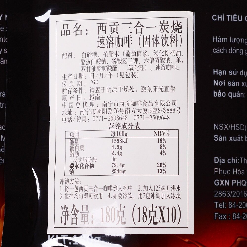 Vietnam imported Saigon coffee charcoal roasted coffee 180g(10 pieces) 3 in 1 instant coffee drink