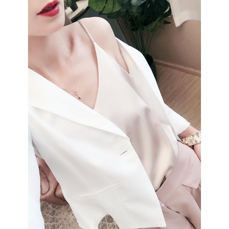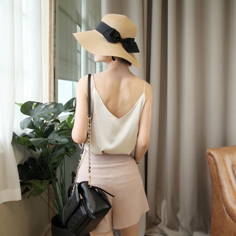 Japan summer new V-neck sling sleeveless small vest women's bottoming shirt satin surface sexy outerwear top