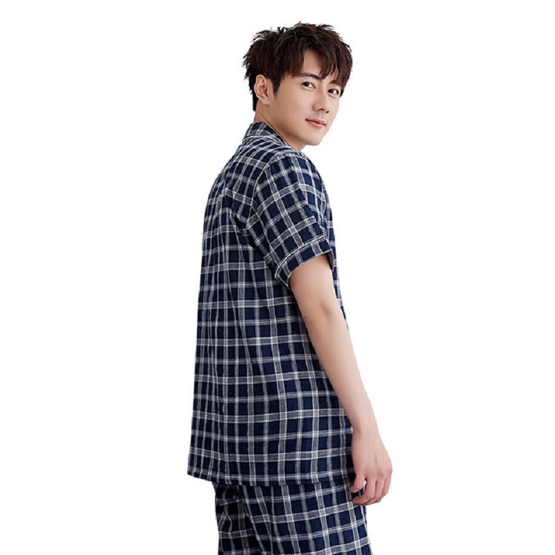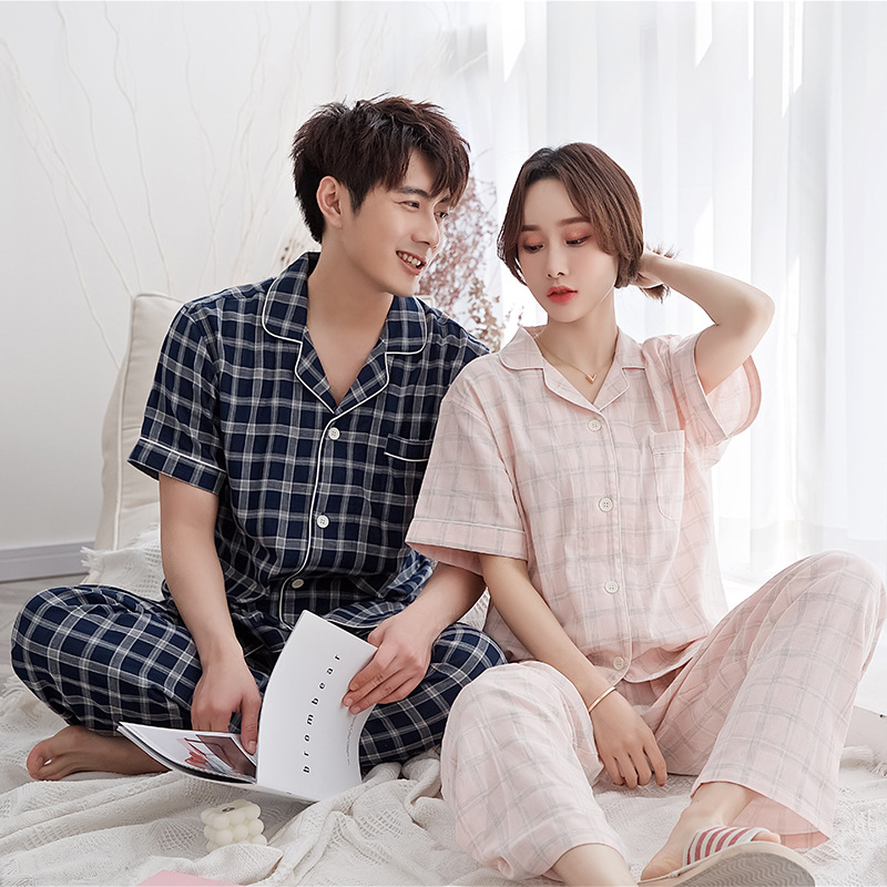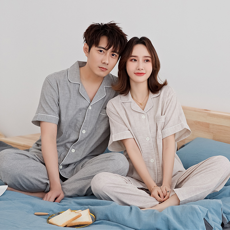 No Inprint mj day style double layer yarn short sleeve long pants Home Suit Soft And Breathable Good Lovers men and women Summer thin pyjamas