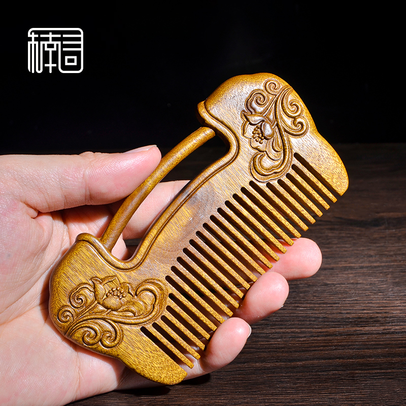Nanxun new product Gold silk Nanmu Ruyi lock wood comb Creative gift to send girlfriend best friend wife holiday gift box comb