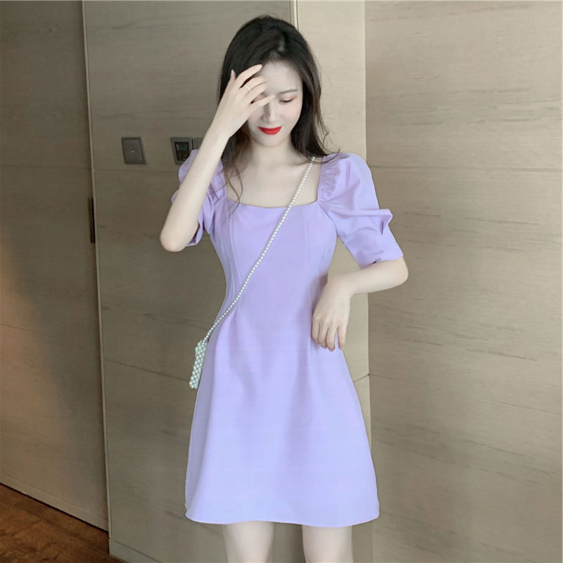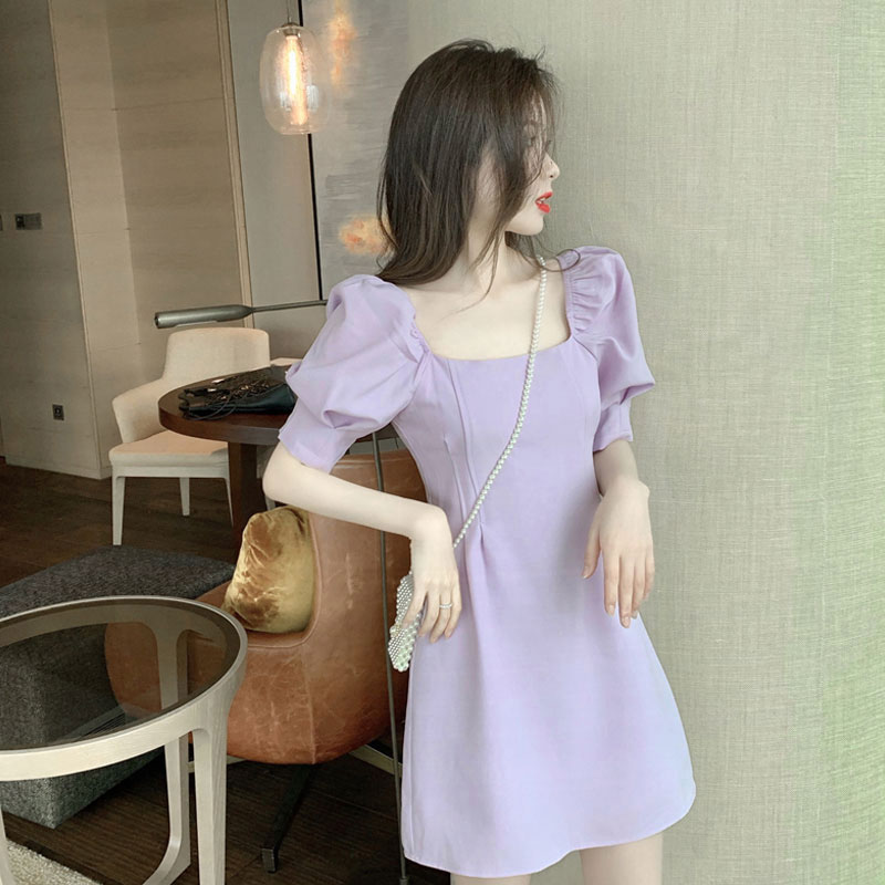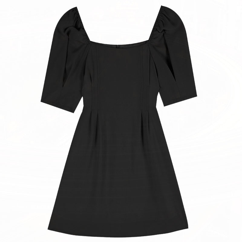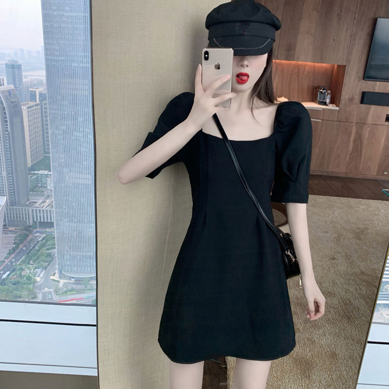 Square collar Hepburn style little black dress French retro dress waist slim temperament small careful machine skirt summer