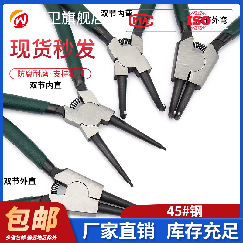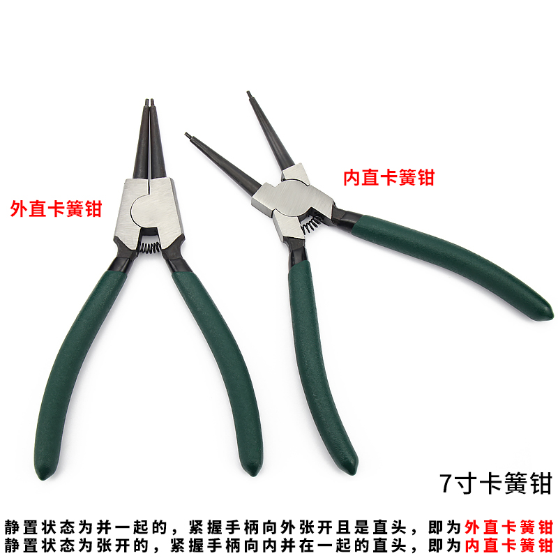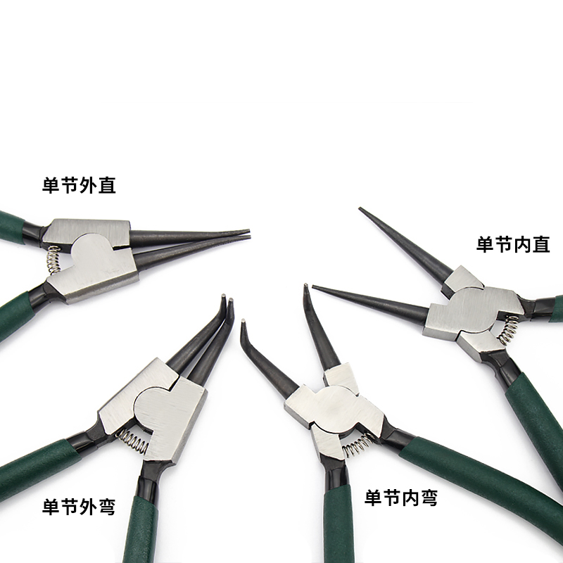 Shaft with double section 7 inch outer straight snap spring pliers hole with double section 7 inch inner straight snap spring pliers shaft with double section 7 inch outer bend clamp spring clamp hole with double section 7 inch inner bend clamp spring pliers shaft with single section 7 inches