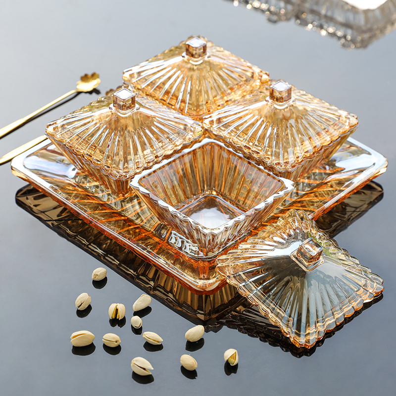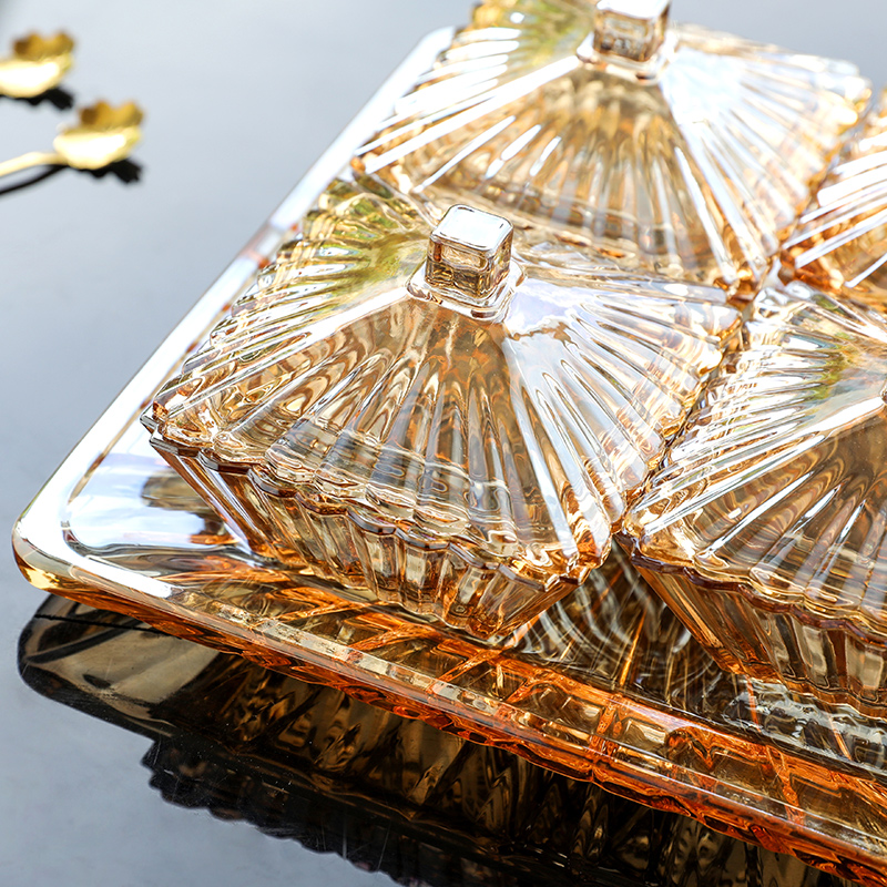 Golden five pieces (4 cans 1 nursery) transparent five pieces (4 jars 1 care tray) golden three sets (2 cans 1 nursery) lotus candy jar high-footed candy jar three-foot candy jar 2