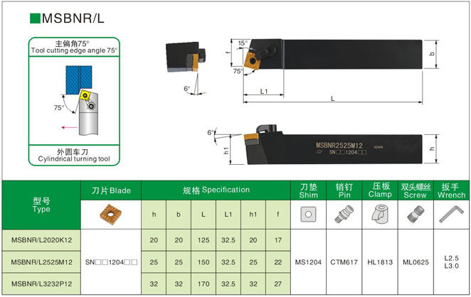 75 degrees Outer round knife lever MSBNR MSBNL2020K12 2525M 3232P15 4040R19