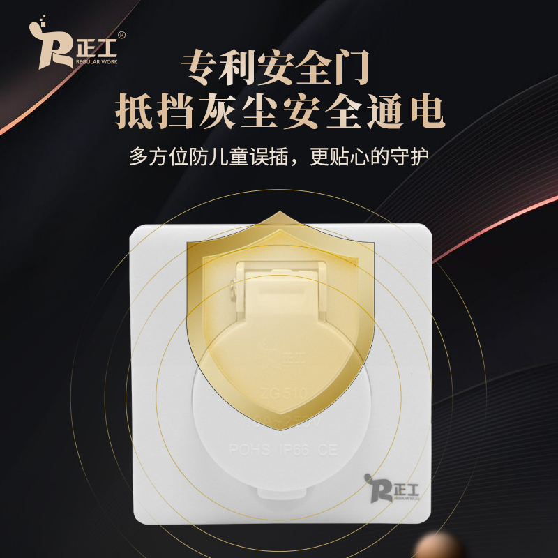 Zhenggong new product household power waterproof socket panel five-hole 10A bathroom toilet splash-proof socket panel