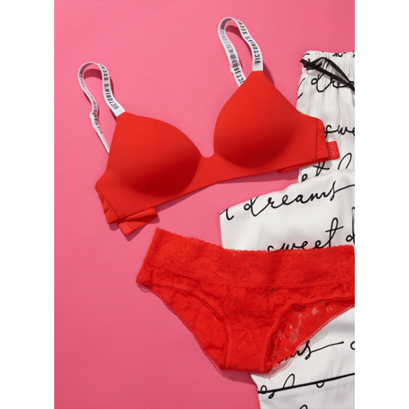 2 pieces 468) Vie with the same LoLogo letter shoulder strap small chest to gather large breasted bra underwear female summer thin
