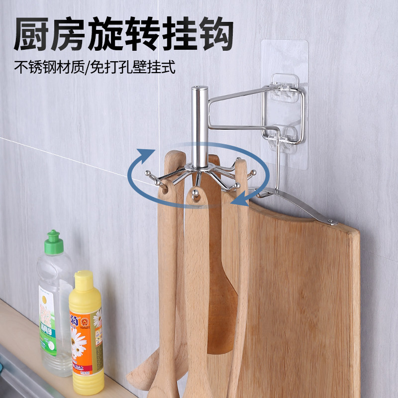 Kitchen Swivel Hook Powerful Adhesive Glue Wall-mounted Wall Stainless Steel Rack Free Spoon Scoop Shovel rack
