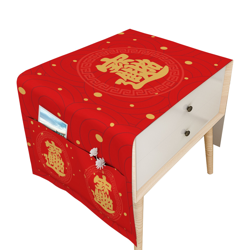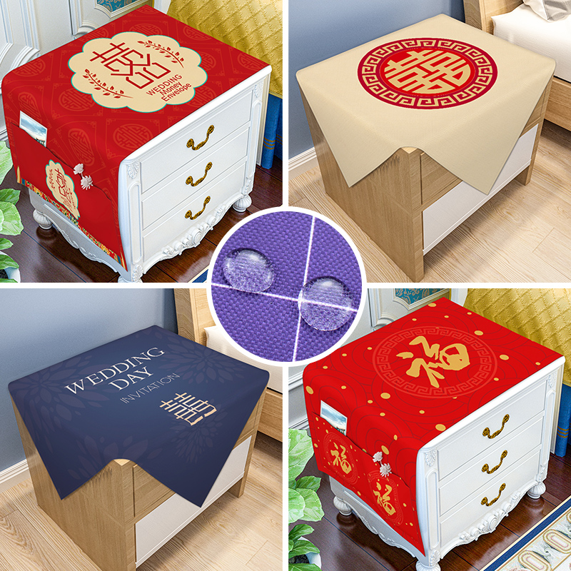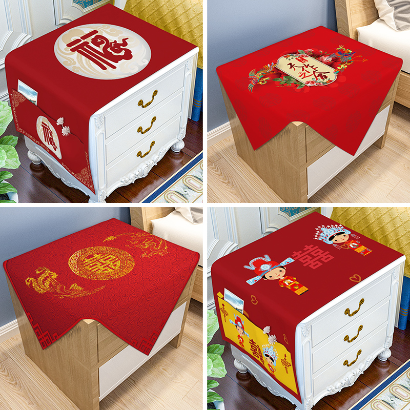 Chinese festive wedding bedside table cover cloth dust cover bedroom set small cloth cover towel refrigerator table dust cloth