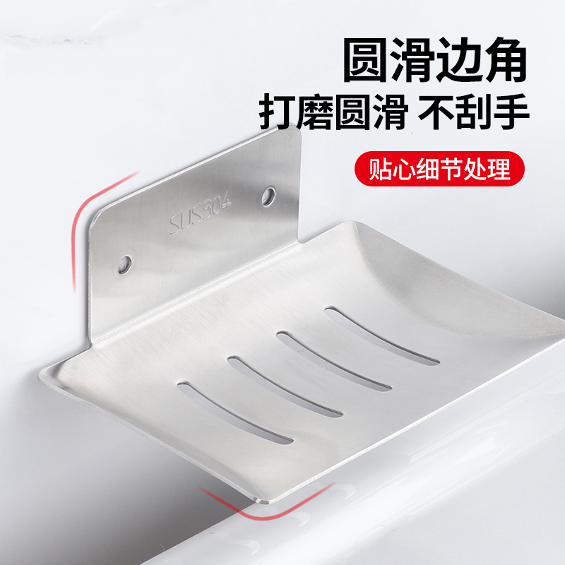 304 stainless steel powder room soap box rack free punch soap box wall-mounted drain creative bathroom rack