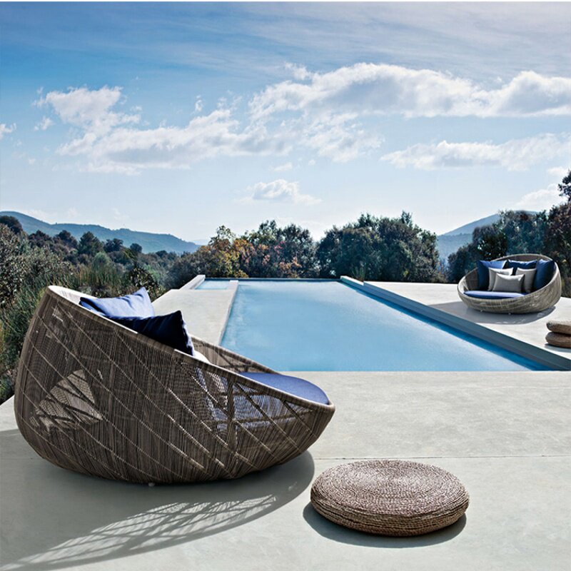 Outdoor lying bed balcony rattan sun bed personality creative simple bed furniture combination set lazy beach lounge chair
