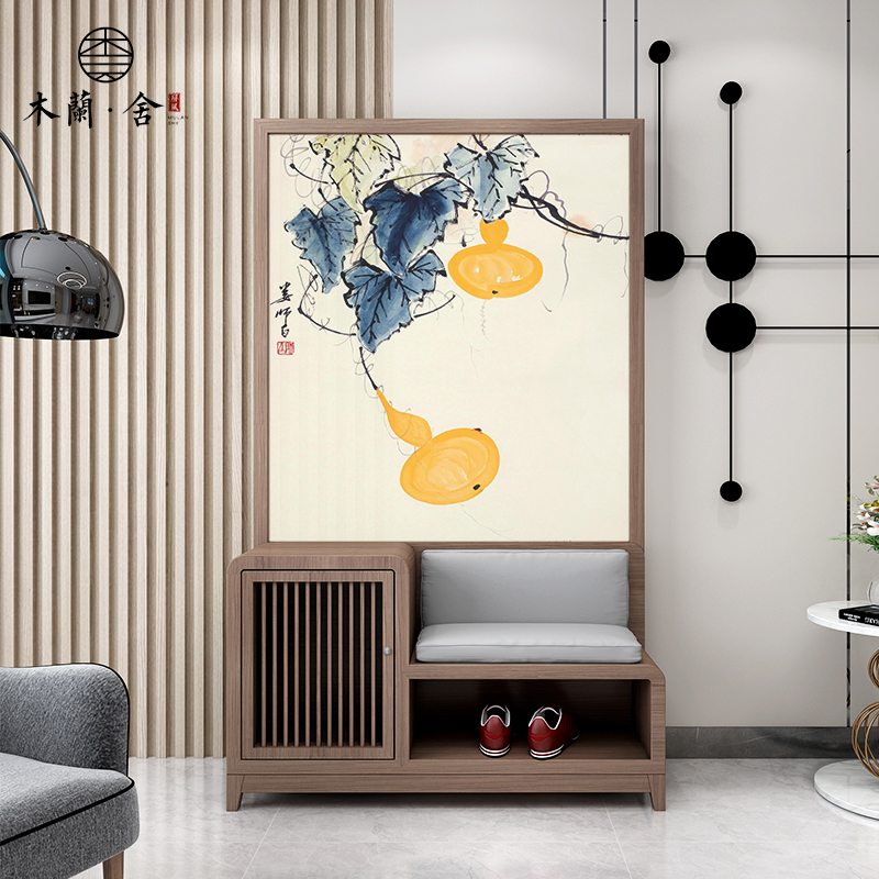 Customized screen partition wall decorated Chinese living room bedroom solid wood entry door to door opening door to shoe stool shoe cabinet seat screen
