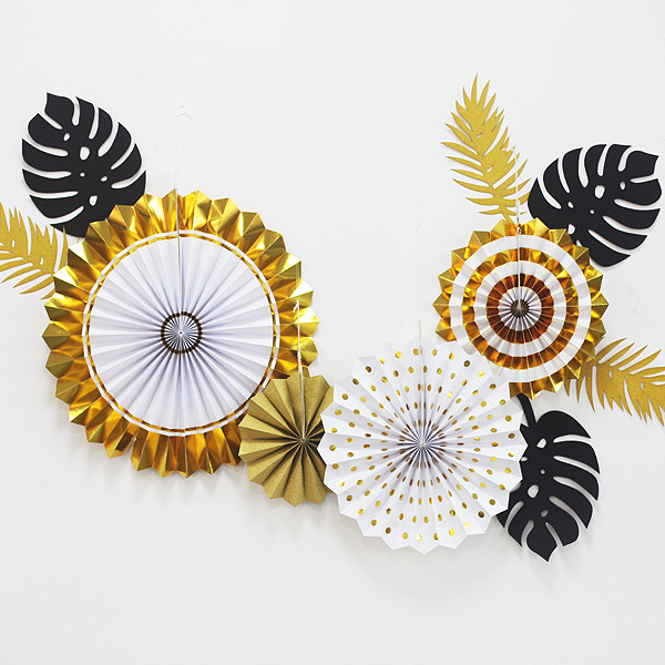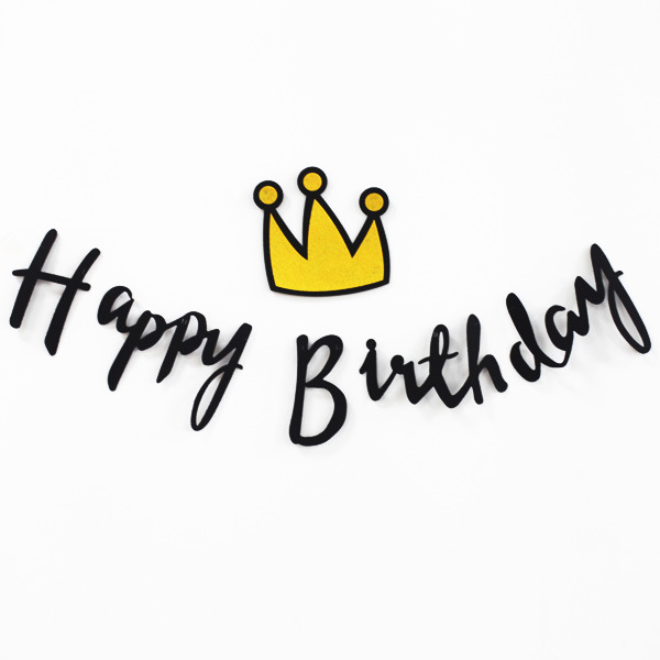 Crown Black Happy Birthday-Laflower Bouquet Cotton Trim Pillow Black Grey Gold Cloud Flower paper fan black gold leaf B Secer cotton Venus 2 black gold ONE pull flag (only pull flag) White