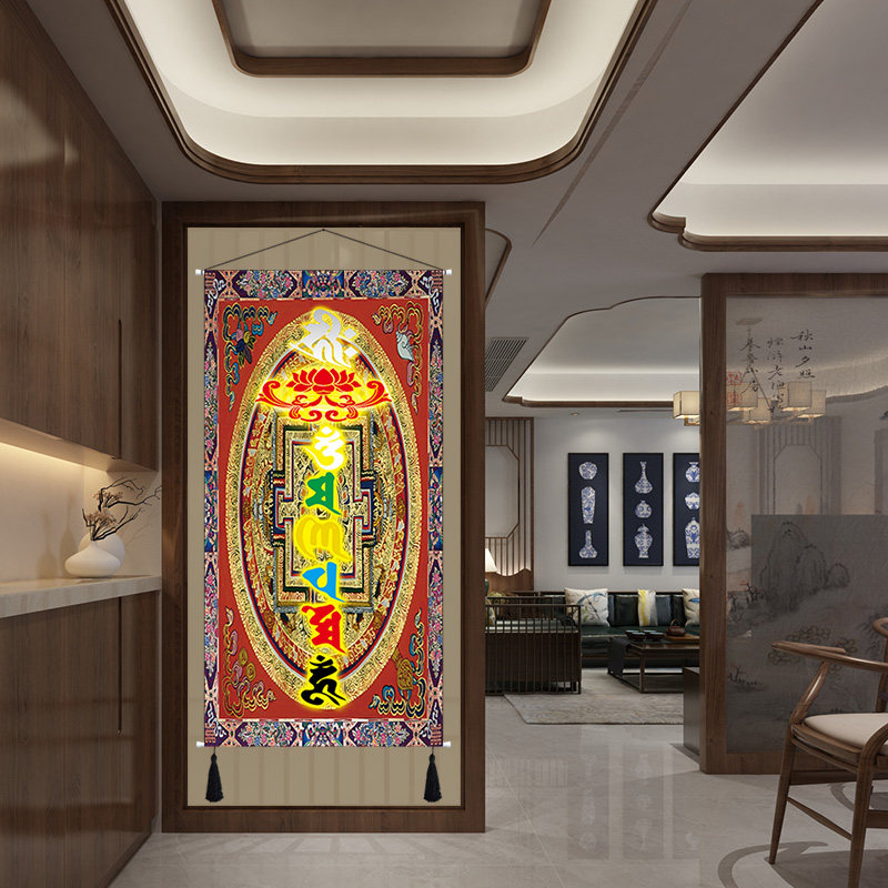 Tibetan six-character mantra Tibetan cloth art hanging painting living room porch sofa background room channel decoration tapestry tapestry
