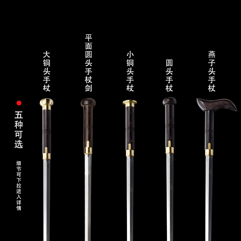 Longquan Quanjiang Sword Chicken Wing Wood Pattern Steel Cane Sword Self-Defense Sword Elderly Elderly Cane Sword Unedged