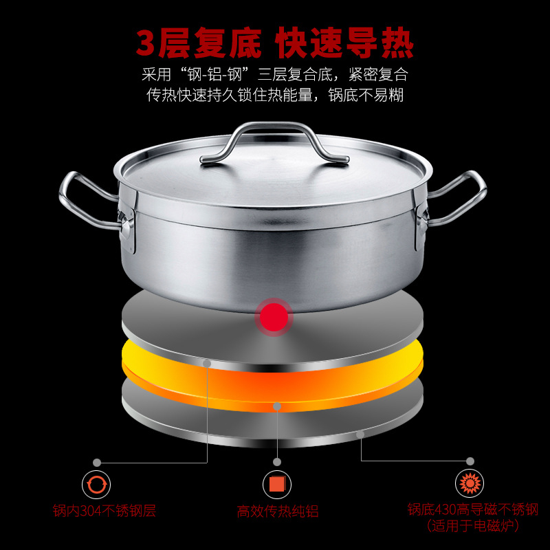 Stainless steel compound soup pot Tianwomen boiler shrimp boiler cooking boiler double ear flat boiler special hot pot