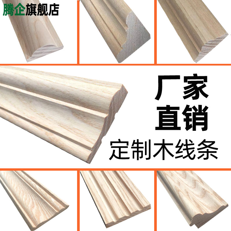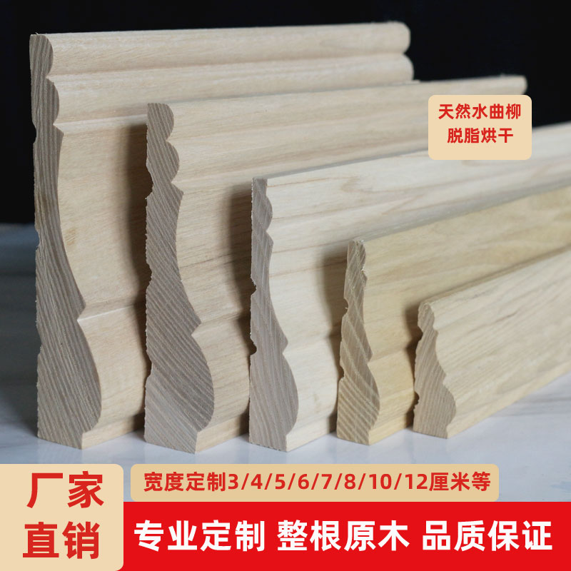 Solid wood line Chinese decorative wood line European flat ceiling paint-free background wall closing edge ash willow door sleeve line