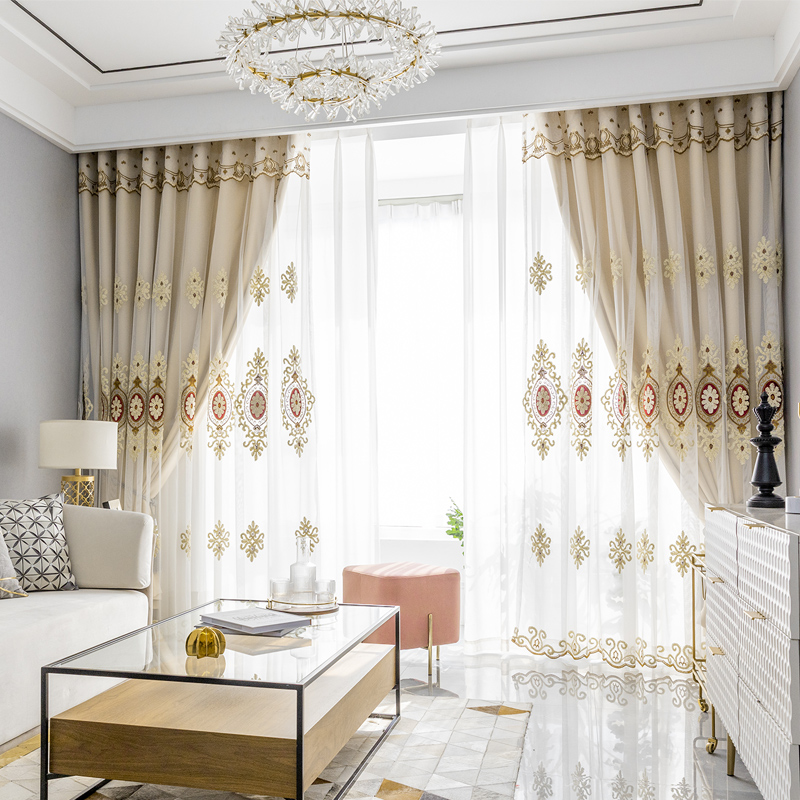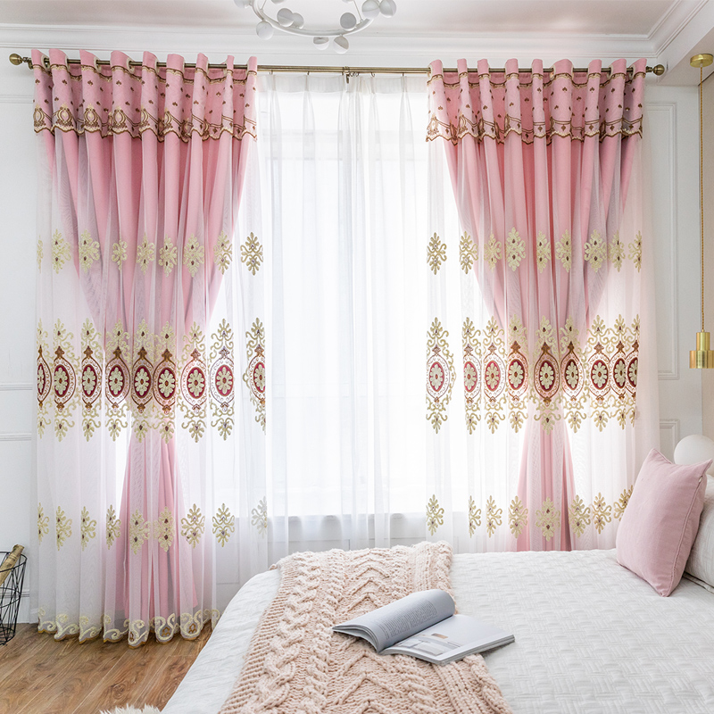 2020 New Double Curtain Finished Products High-end Atmosphere Living-room Eu Style Bedroom Shading Telescopic Rod yarn One
