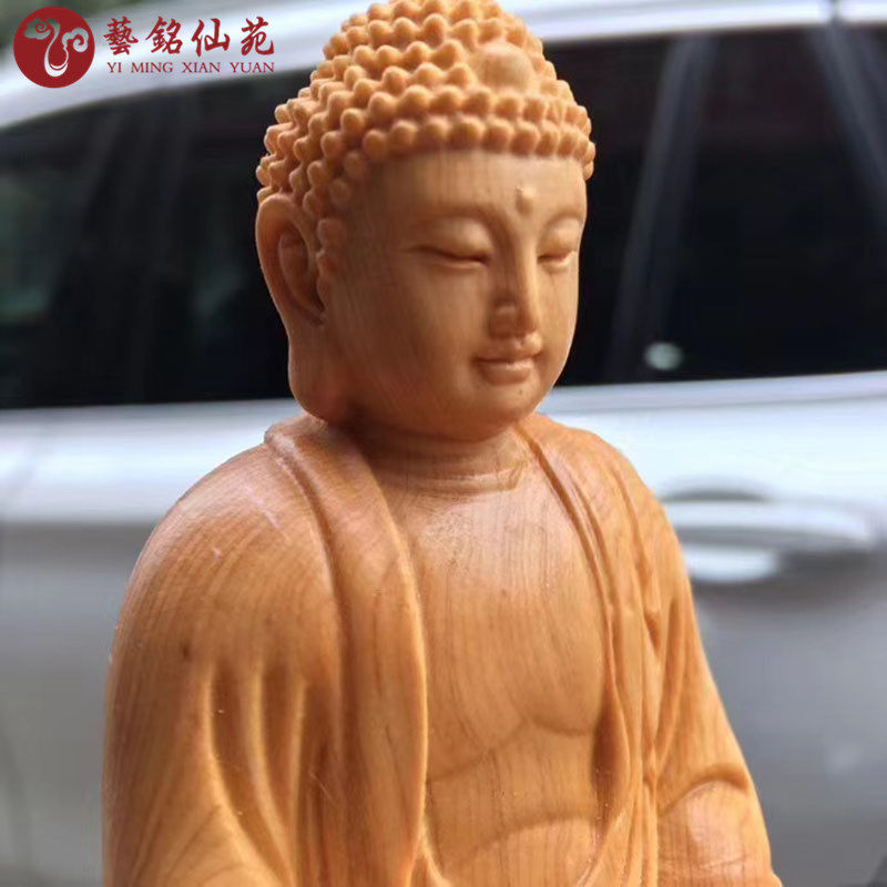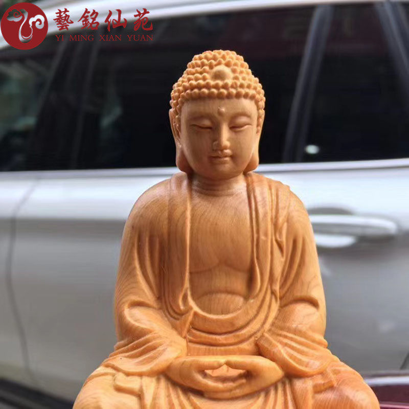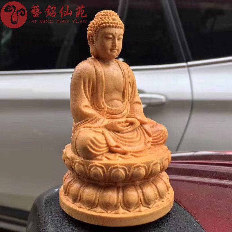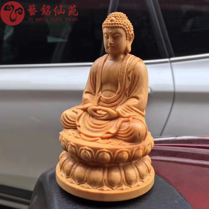 Art Ming Xianyuan Sitting Lotus Terra Buddha Cliff Berwood Solid Wood Engraved Buddhist statues Craftsmanship Gifts Swing Accessories of the Home Feng Shui Swing