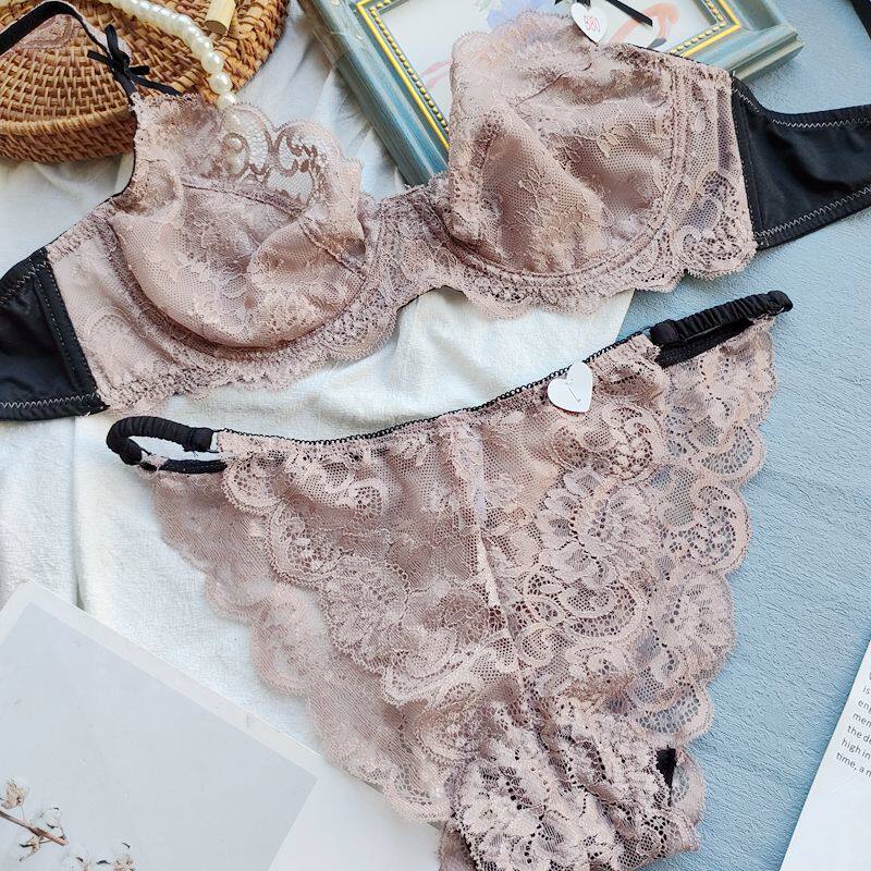 French bar ultra-thin bra set with steel ring big breasts small gathered comfortable breathable underwear summer thin section women