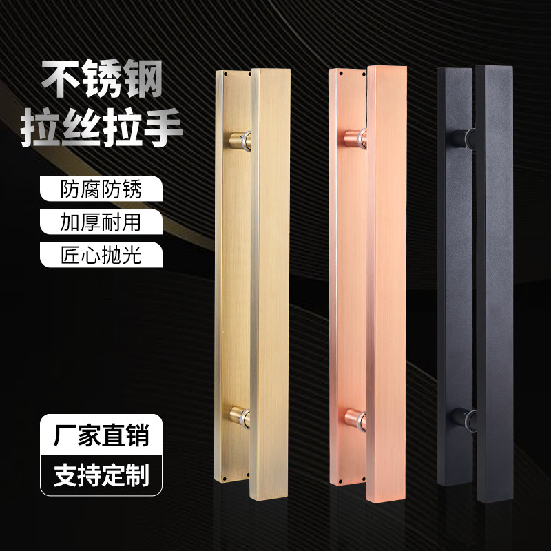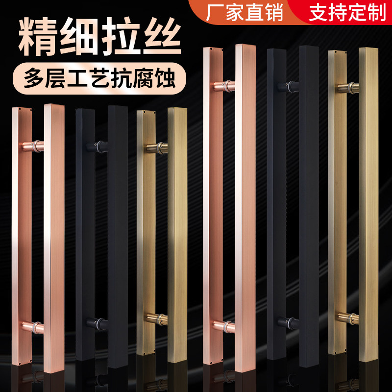 Thickened stainless steel minimalist glass door handle ancient bronze wire drawing large door handle spot wooden door armrest square pipe black-Taobao