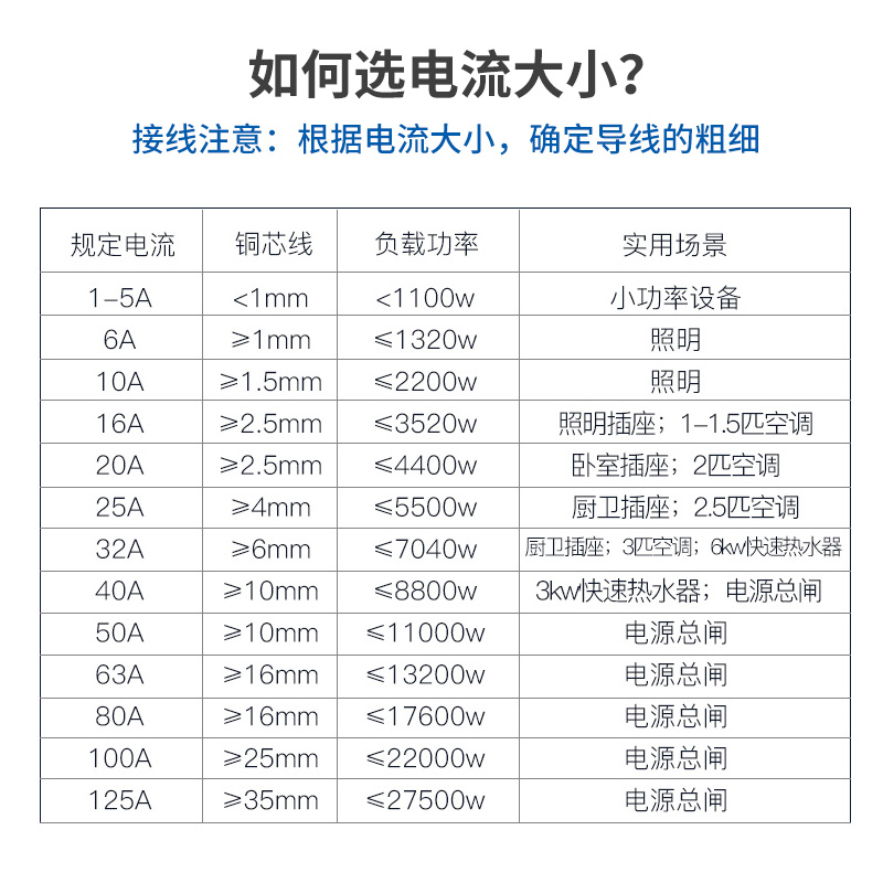 1A 2A 3A 4A 6A 10A 16A 20A 25A 32A 40A 50A 63A 80A 100A 125A