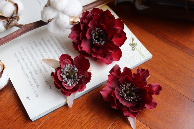 Hanfu silk hairclip peony Ancient Costume National style flower bride headdress photo studio photo ancient style hair ornaments