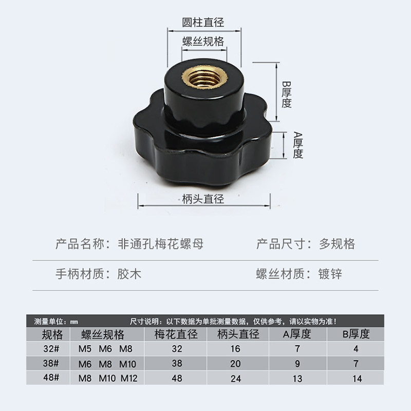 Non-through hole bakelite plum handle nut star handle hand wheel hand screw 5 6 8 10 12 16