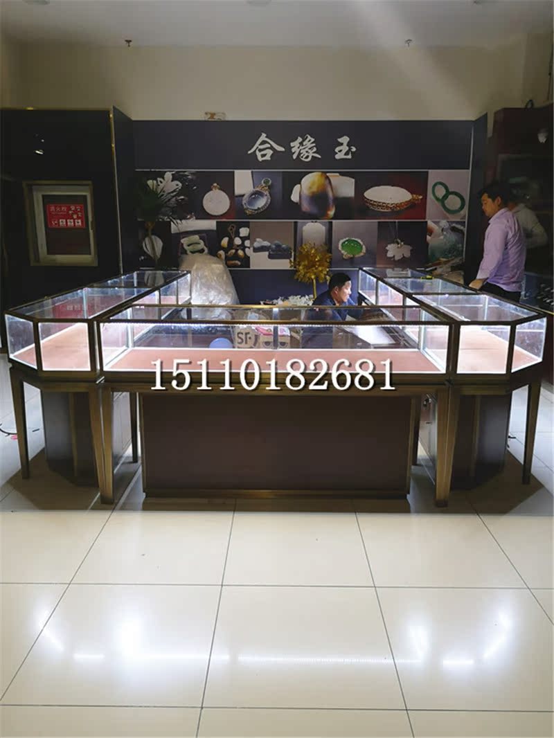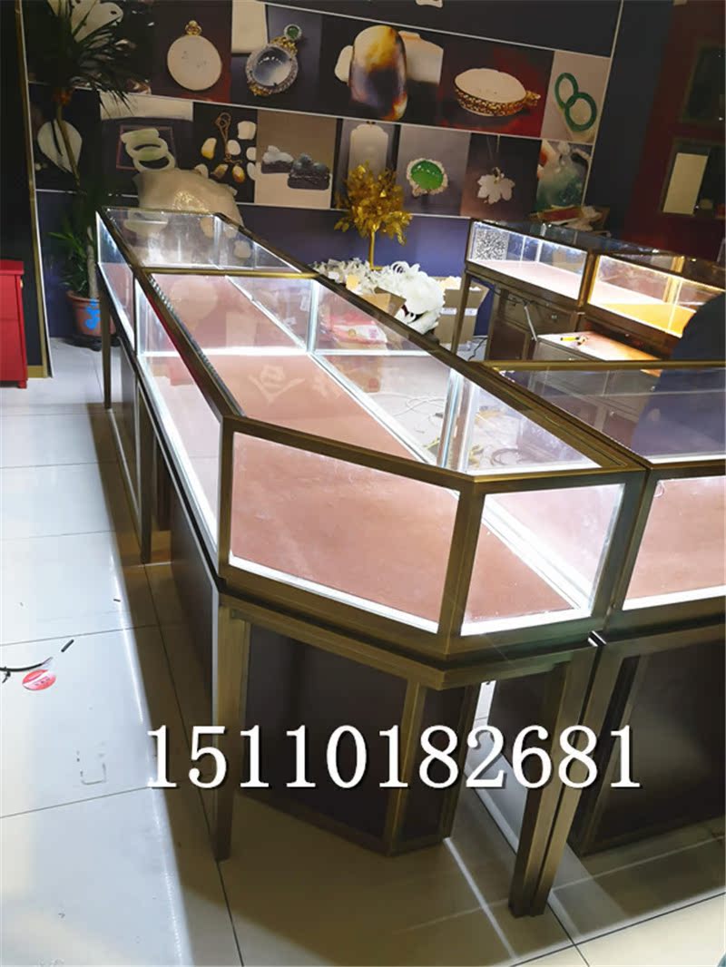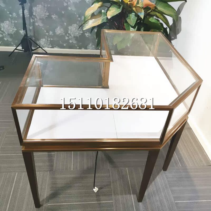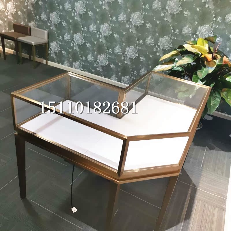 Jewelry display cabinet corner cabinet bevel glass counter stainless steel round the island corner gold jewelry display cabinet Beijing