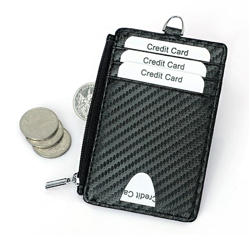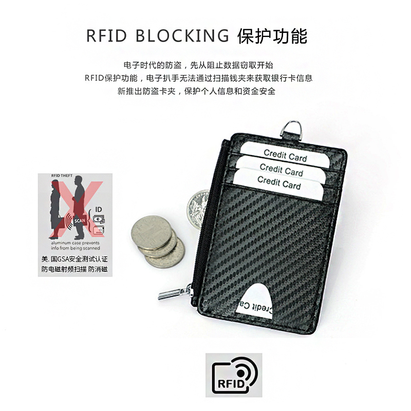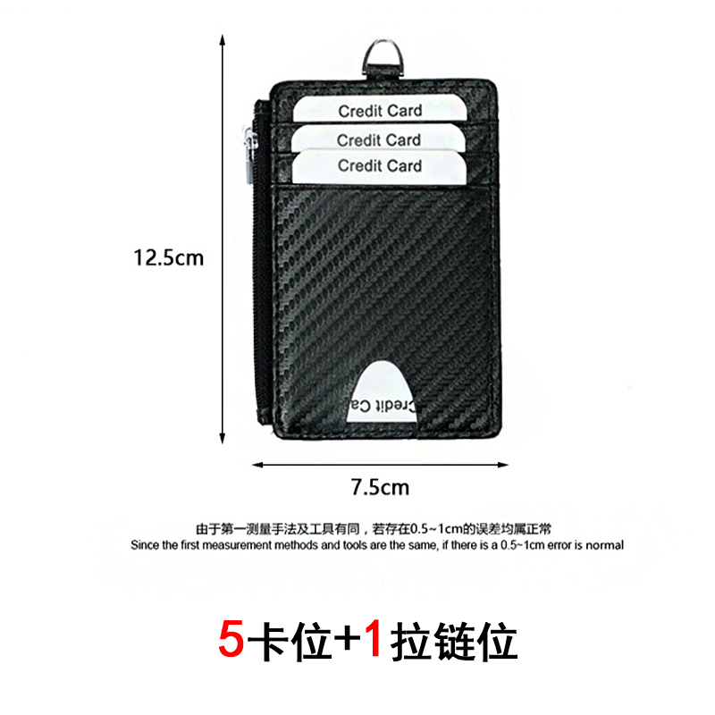 Card Bag Men Ultra Slim Upmarket New Rfid Carbon Fiber Print Multifunction Multi-Position Pull Chain Zero Wallet Cutting Sleeve