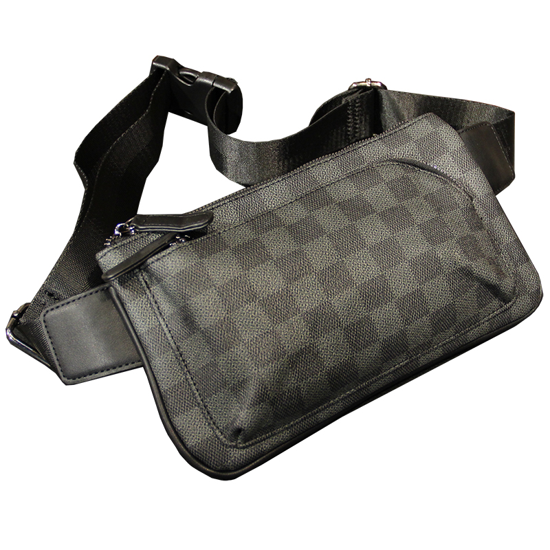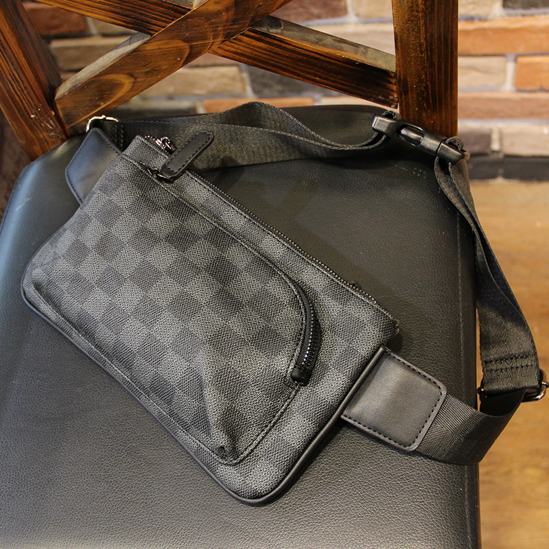 New plaid leather chest bag fanny pack trendy cowhide fashion men's bag wild crossbody trendy men's bag street shoulder bag