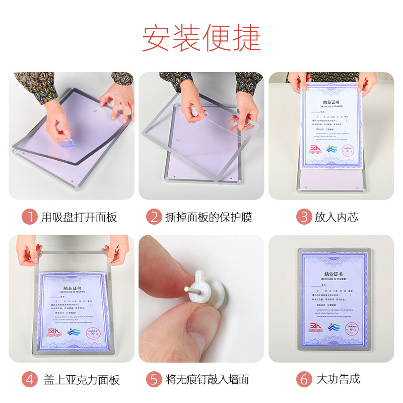 A3a4 Three Good Students Honor Certificate Award-shaped framed frame free of perforated wall-mounted display frame Magnetic Magnetic Document Photo Frame