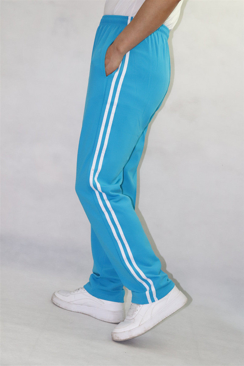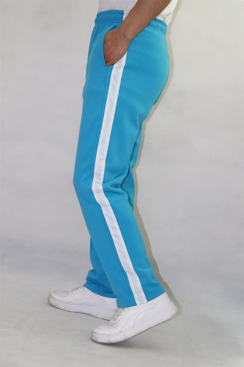 Spring Summer Thin Section Two White Bar Sky Blue Elementary School Junior High School Students Men And Women Straight Cylinder Long Pants Loose School Suit Pants