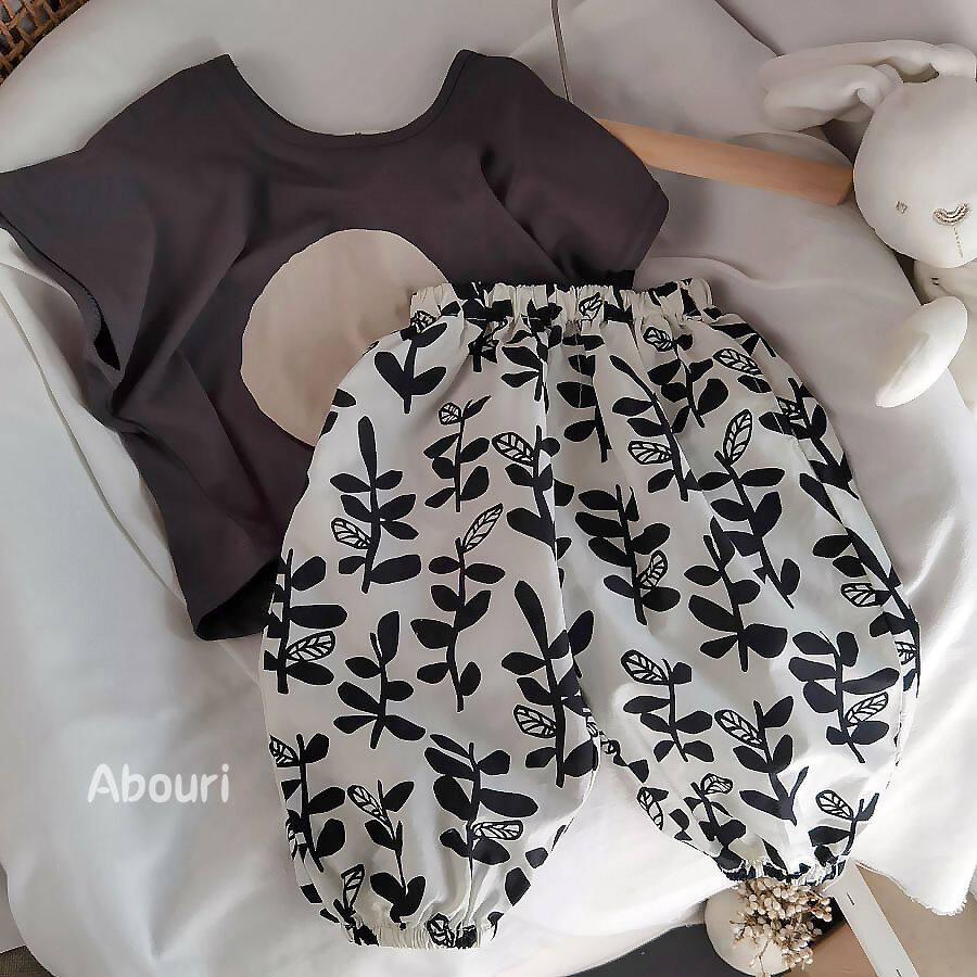 Black and white leaf anti-mosquito pants (1101 #) warm yellow arc pendulum short sleeve T-shirt 30500 #