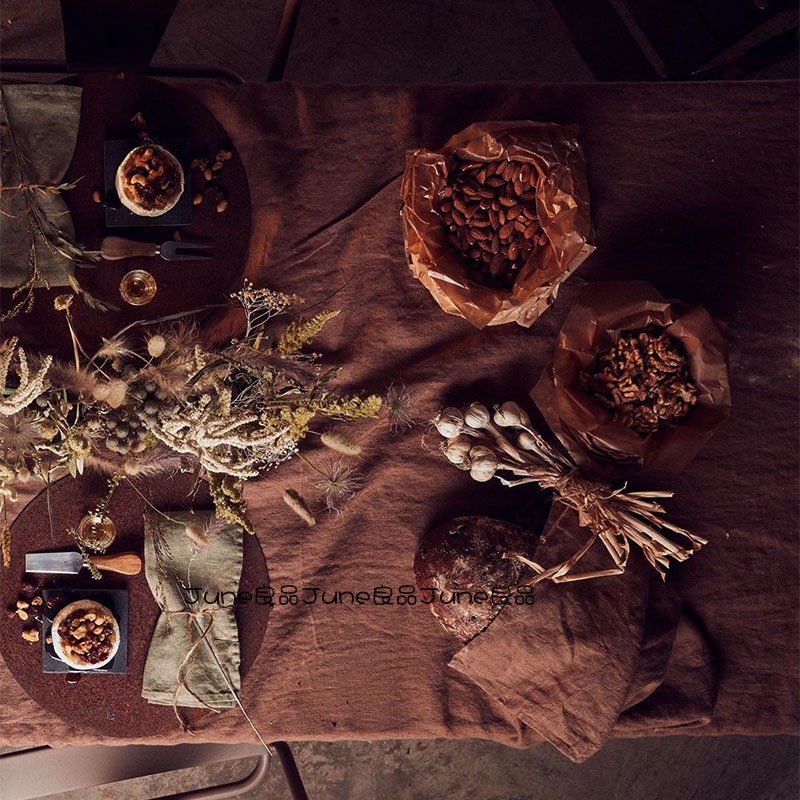Caramel coffee tablecloth ins Nordic modern minimalist retro western table mat fabric linen cotton solid color coffee table tablecloth