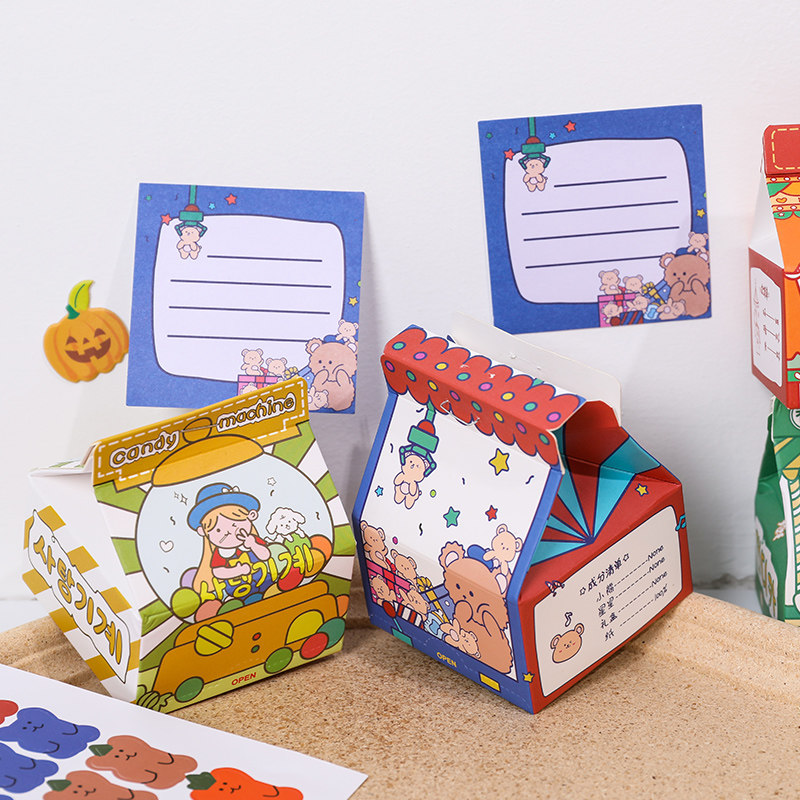 Creative milk box post-it note This cute card set Girl post-it note sticker Desktop vertical decoration Non-sticky post-it note paper Korean ins message note sticker can be torn n times paste small book can be customized