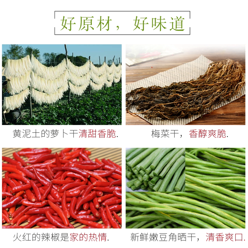 Robe dried plum dried vegetables red pepper and ginger garlic salt and so on