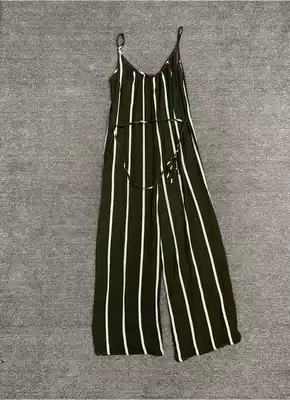 Suspender wide leg pants foreign trade tail goods summer women's loose and wild front and rear V-neck vertical stripes thin women's casual jumpsuit