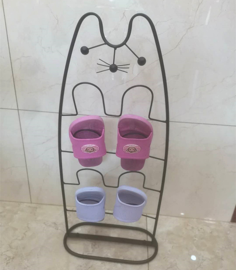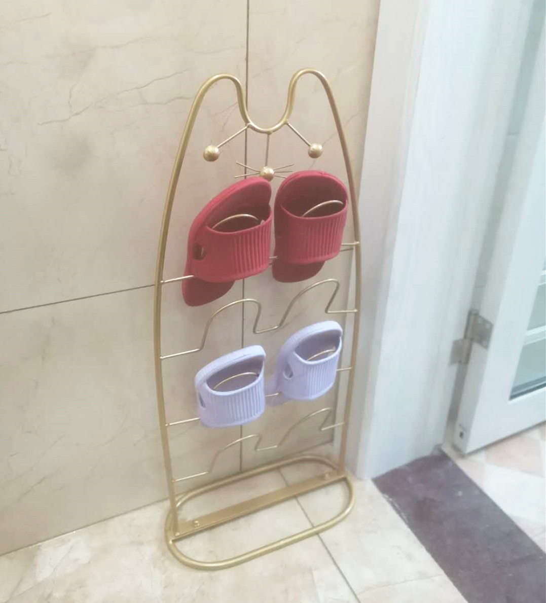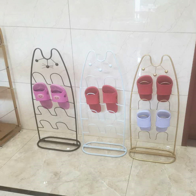 Creative Lucky Cat Wrought Iron Slipper Rack Bathroom Living Room Door Floor-to-ceiling Multi-layer Shoe Rack Simple Household Space Saving