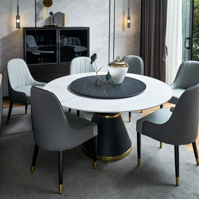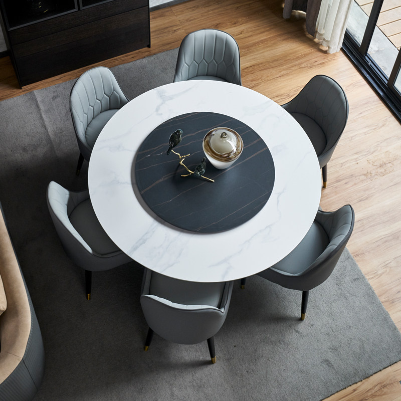 American minimalist rock slab dining table light luxury leisure designer negotiating table and chair combination simple dining table and chair with turntable